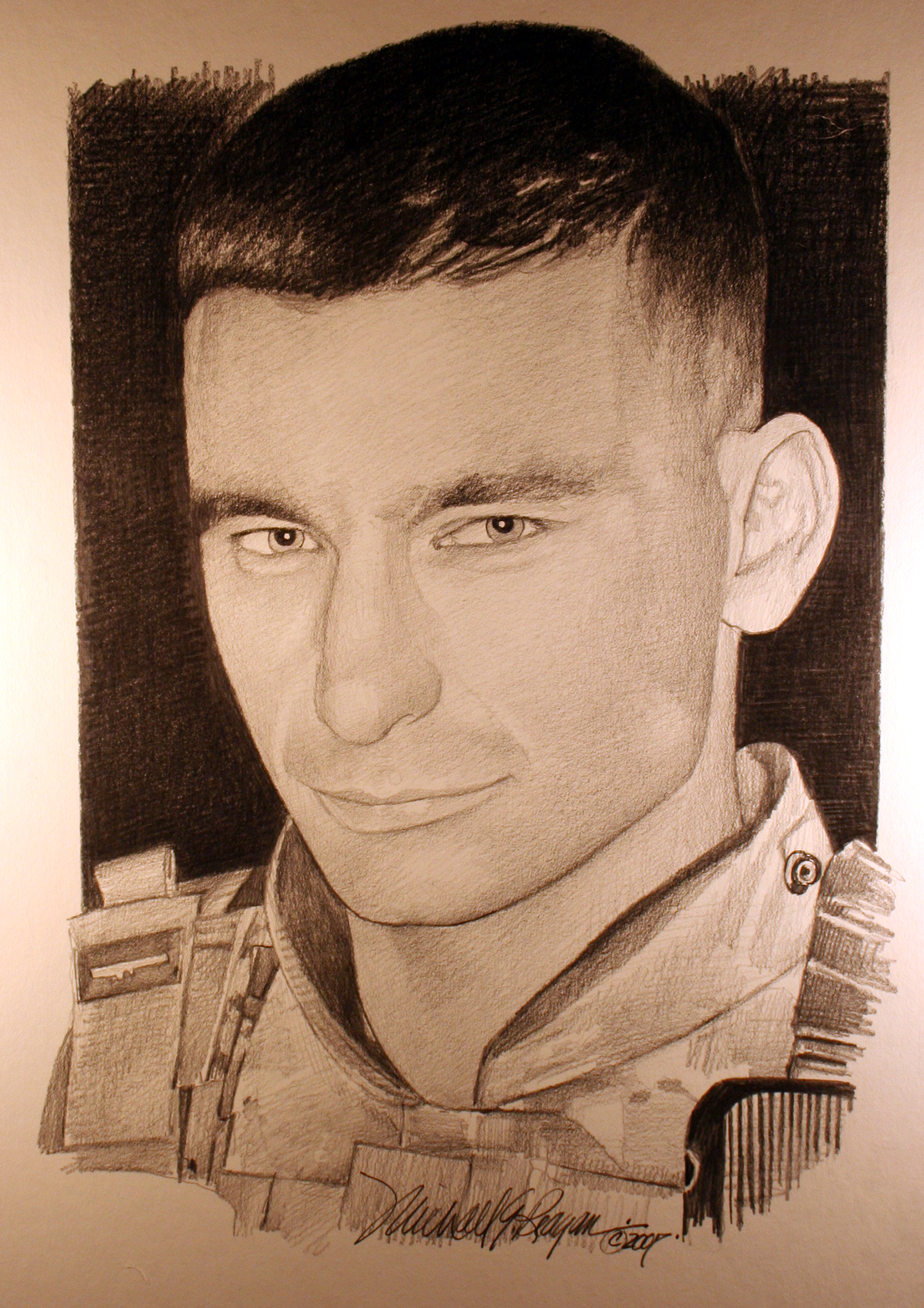 Josh is survived by his wife Heather and son Bayley. Joshua’s mother Lois lives in Broomfield, CO and his father, Kris Hager, in Venice, FL. Joshua’s brother Aaron is in the USCG and is stationed in Miami, FL. Joshua now has a younger brother, Carson, who loves to say “Hi Joshie” as he looks at the portrait presented by Mr. Reagan.